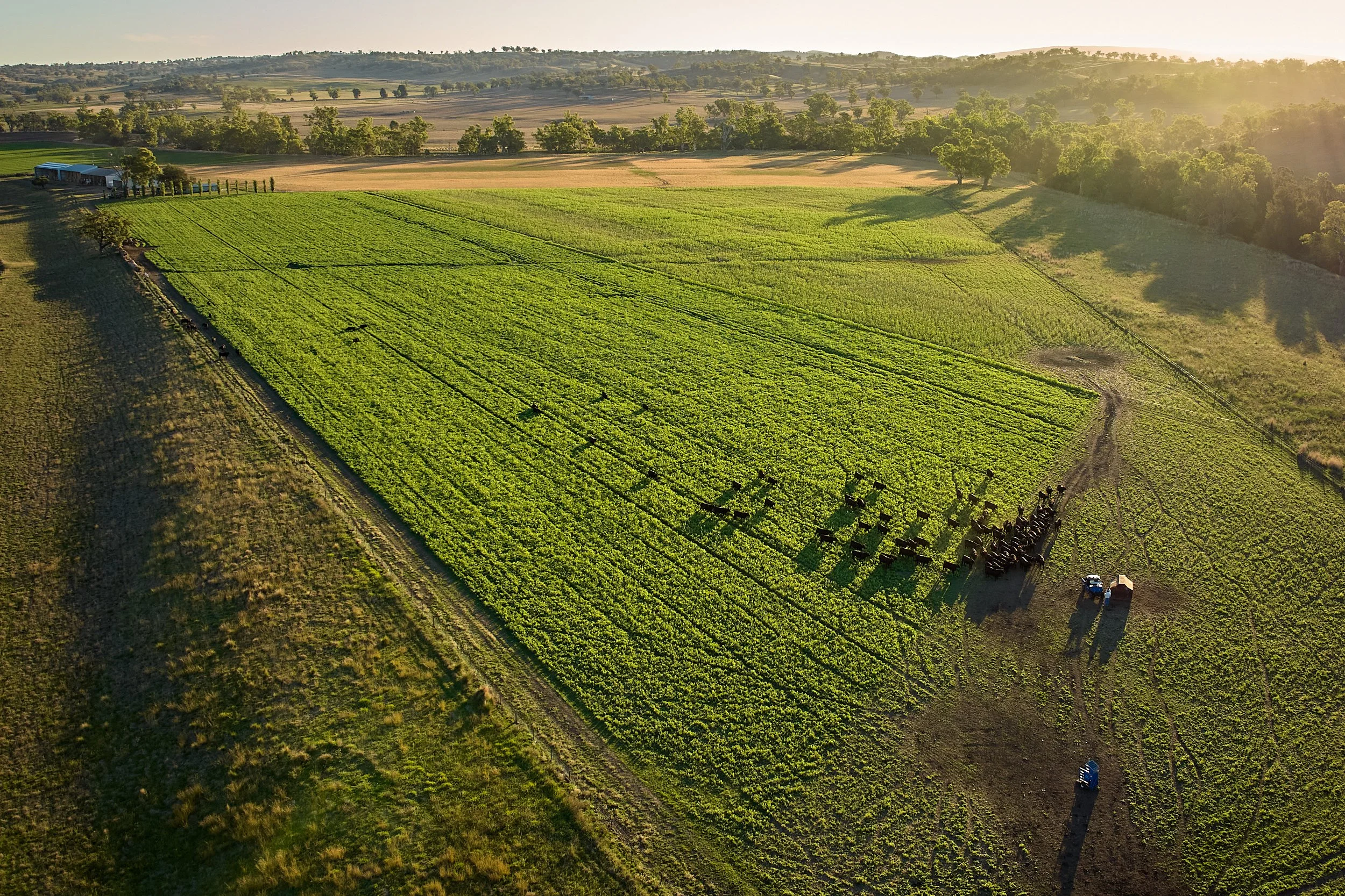 At Bell River Beef, we produce high-eating-quality, pasture-fed Angus beef raised on the fertile pastures of Bell River Farm in Central West NSW. Our cattle roam diverse, nutrient-rich pastures made up of clover, rye, native grasses, and seasonal forage crops like barley, wheat, and lucerne. This natural variety, combined with our careful finishing practices, results in beef renowned for its tenderness, marbling, and flavour.